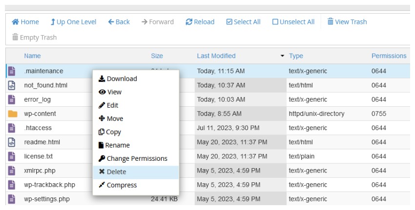 Method 1: Delete the .maintenance File Using cPanel