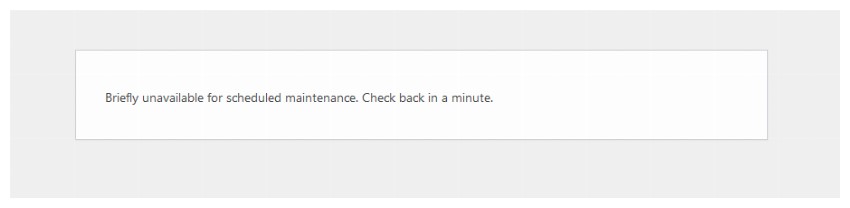 If your site continues to display a message like “Briefly unavailable for scheduled maintenance” for more than a few minutes, it is likely stuck. Normally, maintenance mode only lasts seconds or minutes during updates.